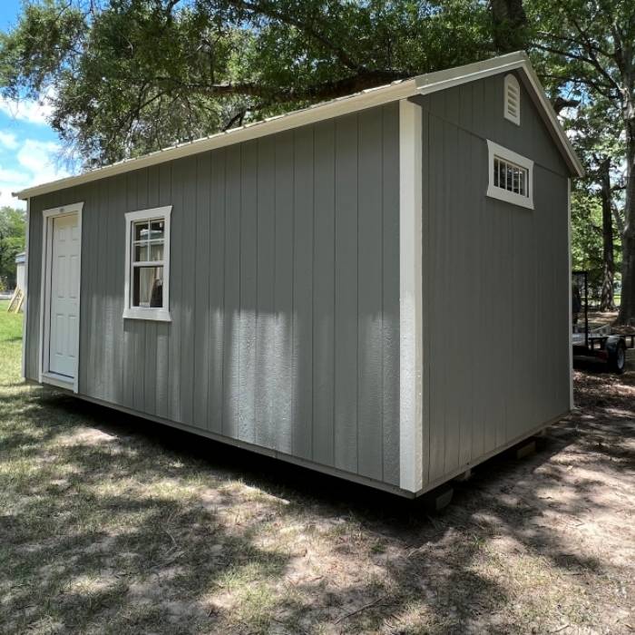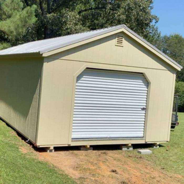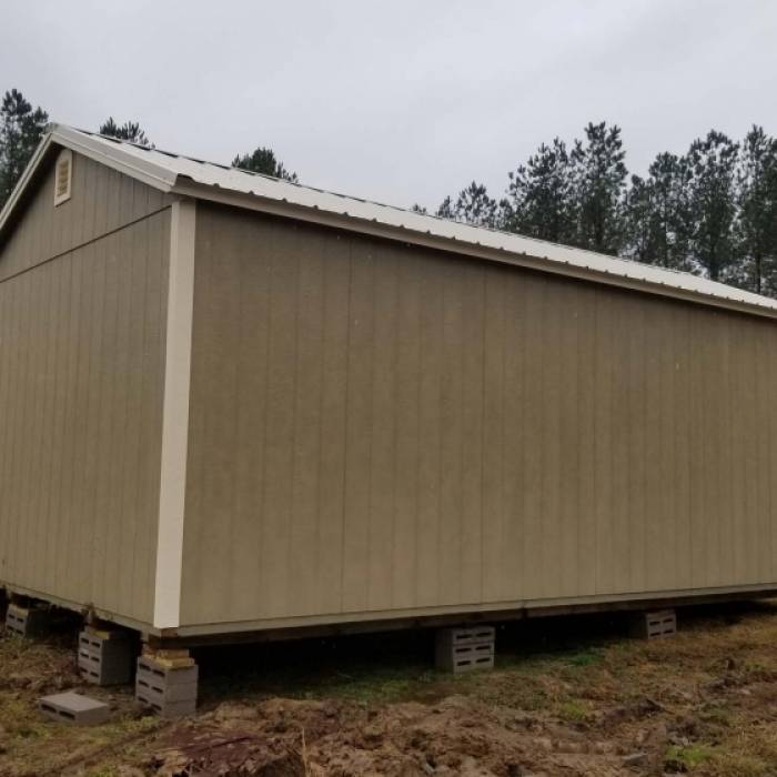 JUST RECEIVED MY 16X24 GARAGE BUILT ONSITE AT MY HOME. 2 DAY BUILD TIME WAS GREAT AND QUALITY IS MUCH BETTER THAN ANY OF THE OTHER BUILDINGS THAT I RESEARCHED BEFORE ORDERING FROM UPB. THERE WAS A SOME DELAY DUE TO MATERIAL SHORTAGES, BUT THE BUILDERS DID A GREAT JOB ONCE EVERYTHING WAS RECEIVED. I WILL HAVE TO JACK IT UP AND MOVE A COUPLE OF THE BLOCKS ON THE FRONT SO THAT THEY WILL BE COMPLETELY UNDER THE BUILDING, BUT OTHERWISE I AM PLEASED WITH THE BUILDING AND THE ENTIRE PROCESS. THANKS GUYS